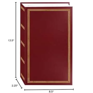 Show moreThe 3-ring pocket BURGUNDY album for 504 photos is the perfect blend of nostalgia and utility, designed for those who value preserving their cherished memories. With the ability to hold an impressive 504 four-inch by six-inch photos, this album brings together form and function in a way that complements your lifestyle. Its sturdy 3-ring binder not only makes it easy to add and rearrange pages as your collection grows, but it also ensures that your photos are securely housed. Each page is designed to accommodate six photos in a landscape orientation, which beautifully showcases everything from family gatherings to adventures and everyday moments. Its tall yet narrow design minimizes space usage without sacrificing capacity, making it an ideal centerpiece for your coffee table.
