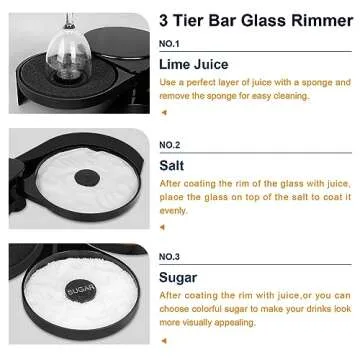 Why You Will Love This Product? The ease and efficiency of using the **3-Tier Bar Glass Rimmers** will truly elevate your cocktail preparation. Imagine serving your friends beautiful cocktails adorned with perfectly curated rimming — it’s not just about the drink but the entire experience! This product promises to make every gathering more enjoyable, and with its sleek design, it effortlessly fits into any bar motif. It’s more than just a bar tool; it’s a pathway to a fun, engaging evening filled with laughter and unforgettable cocktails!