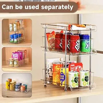 Show more Are you tired of cluttered countertops and chaotic cabinets? The upgraded 3 Tier Pull-out Home Organizer is the perfect solution for your storage woes! Crafted from high-grade ABS plastic and thickened stainless steel, this organizer boasts a sturdy and stable structure that promises durability and functionality. It is BPA and Chlorine free, ensuring that it is safe for food storage, while also being shatter-resistant, water-proof, and rust-proof. With 4 anti-slip gel feet pads, you can rest assured that your organizer will protect your surfaces and prevent sliding.