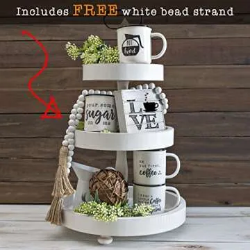 Versatile 3 Tiered Farmhouse Decor with Bead Garland, White Stand