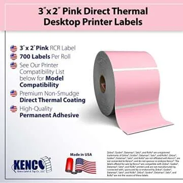 3” X 2" Direct Thermal Perforated Stickers Labels for Barcodes, Address, Small Business Labeling, Inventory and Color Coding - Compatible with Zebra, Rollo, Munbyn, and More (1 ROLL, Pink)