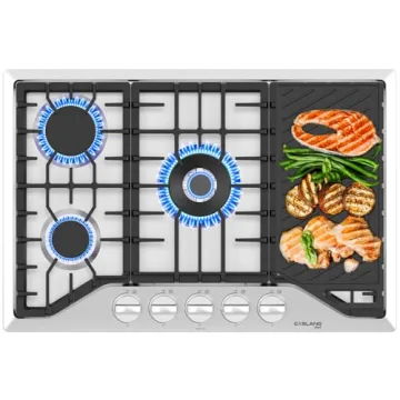 30 Inch Gas Cooktop with Griddle - 5 Burner Stainless Steel Stovetop