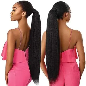 30 Inch Kinky Straight Ponytail Extension, Soft & Natural as Human Hair, Wrap Around Ponytail Extension for Black Women, Long Italian Yaki Synthetic Hair Extension, Natural Black(1B)