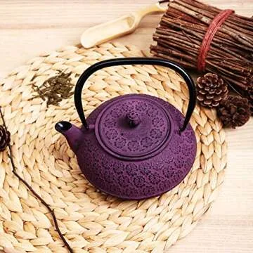Show moreIntroducing the exquisite 30 oz Cast Iron Teapot, crafted to elevate your tea-drinking experience. With an elegant purple hue and a traditional Japanese design, this teapot seamlessly combines beauty with functionality. Made from heavy iron, it not only retains heat exceptionally well but also enhances the flavor of your tea, ensuring every sip is a delightful experience. Its thoughtful construction features an enameled interior that simplifies cleaning and helps prevent rust, making it a practical choice for any tea lover. Complete with a stainless steel infuser and a removable lid, this teapot accommodates loose leaf teas of all varieties, allowing you to explore new flavors with ease.