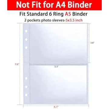 30 Pack 120 Pockets 3.5x5” Photocard Sleeves for 6 Ring A5 Binder, Ultra-Clear Photo Sleeves, Double-Sided 2 Pocket Photo Pages, Top Loading Photo Sheet Protector for Photos, Postcards, Seed Packets