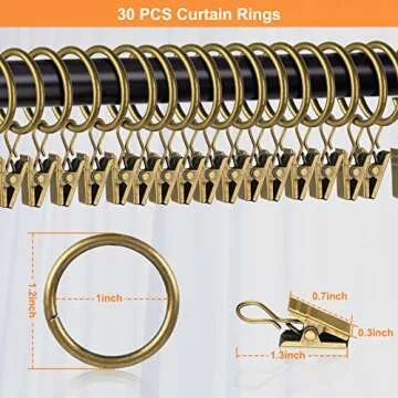 30 PCS Antique Brass Clips Curtain Hooks for Curtain Rod, This Small Drapery Curtain Ring with Clips Hook Fit Up to 0.4~0.75 -inch Drapery Panel