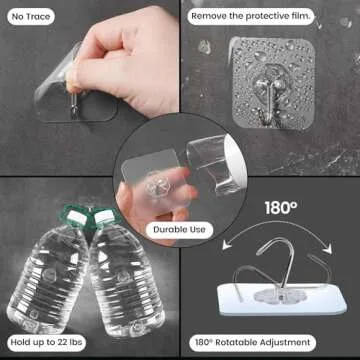 Unlike many traditional hooks that require drilling and can cause wall damage, our Clear Adhesive Hooks stand out with their easy-peel design and strong adhesive backing. While other hooks might sag or fail under weight, our premium hooks guarantee up to 22lbs of secure support. With a sleek, modern aesthetic, they outperform competitors that may use inferior materials prone to rust or wear.