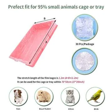 Show moreDiscover the ultimate convenience for pet care with our premium 30 Pcs Guinea Pig Disposable Cage Liners. These liners provide an effective solution designed specifically for small animals, ensuring that your cleaning routine is quick, easy, and mess-free. Crafted from high-quality, non-toxic plastic, these liners are built to prioritize the health and safety of your furry companions while maintaining a tidy living environment. The generous elastic band edging stretches to a remarkable length of 1.2m, allowing them to fit snugly in most cage sizes, specifically those measuring 70*50cm (27*20 inches). Perfect for small pets like rabbits, guinea pigs, birds, and hamsters, these liners are the answer to all your cage cleaning woes.