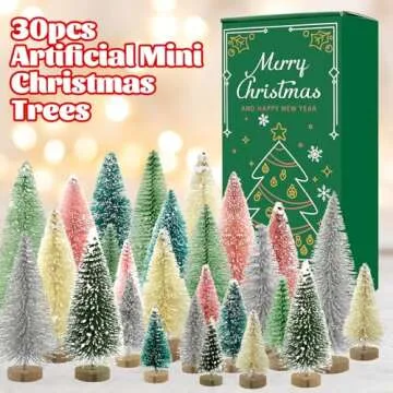 30 PCS Mini Bottle Brush Christmas Trees with Wood Base, Small Pine Tree Sisal Trees for Christmas Table Top Decor Winter Crafts Ornaments