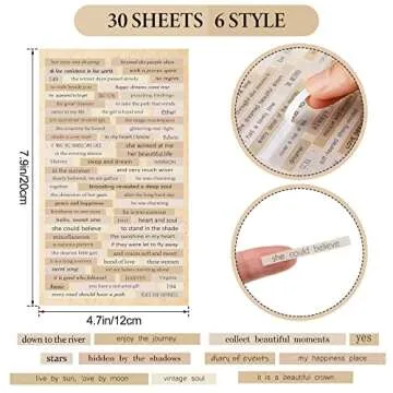 Show more Introducing a fantastic way to express your creativity and personality—our Vintage Word Stickers. Crafted from high-quality coated paper, these stickers are designed to enhance your scrapbooking, journaling, and various DIY projects. Each package conveniently includes 30 sheets, featuring 6 unique styles that will cater to varied tastes and preferences. Whether you're looking to revive a vintage aesthetic or add a modern twist to your crafts, these stickers are the perfect solution.