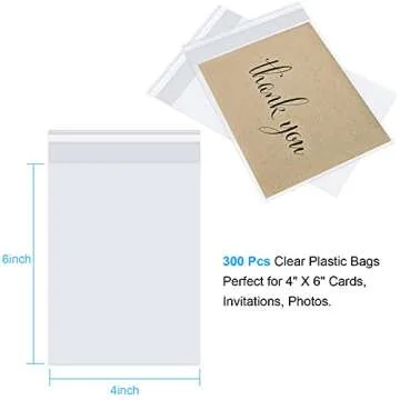 300 Pcs Clear Cellophane Bags, 4x6" Self-Adhesive for Bakery and Gifts