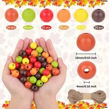 Show moreIntroducing our 300 PCS Fall Wood Beads, a must-have for all crafting enthusiasts and DIY lovers! These decorative beads are designed with a soft yet elegant matte sheen and feature captivating autumn colors such as red, yellow, green, orange, and brown, reminiscent of the beautiful fall foliage. Perfectly sized at 0.63 inches in diameter, they provide a lush and inviting look to any project. Each pack includes 50 beads in 6 stunning colors, totaling 300 farmhouse wooden craft beads along with 21.9 yards of high-quality hemp rope, ensuring you have just what you need for a variety of creations. Whether you're an experienced crafter or just getting started, these beads will elevate your autumn-themed décor to new heights.