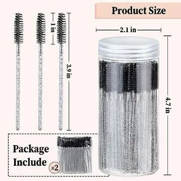 300PCS Disposable Eyelash Brush with 1 Replacement Container, Mascara Wands for Eye Lash Makeup Accessories, Spoolies for Eyelash Extensions, Crystal Eyebrow Brushes - Black