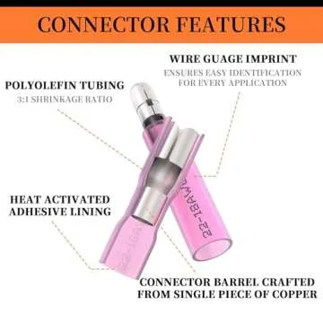 This kit not only offers superior functionality but also enhances mechanical damage resistance through its adhesive-lined heat shrink tubing. Whether you’re involved in home improvement, automotive repairs, or scientific projects, this connector set provides high tensile strength and durability. Plus, the color-coded tubing with wire gauge imprint allows for easy identification, simplifying the process of selecting the correct bullet connector for your needs.