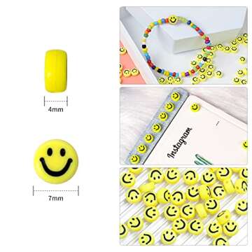 300pcs Yellow Smile Face Acrylic Beads,7 Mm Acryl Happy Face Spacer Beads for DIY Jewelry Bracelet Earring Necklace Craft Making Supplies