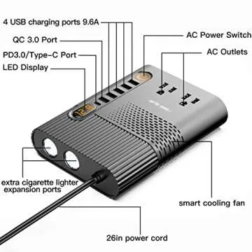 300W Car Power Inverter 12V DC to 110V AC Car Adapter for Plug Outlet, Car Mounted Converter Power Inverter with Type-C Port, 4 USB Ports, QC Port, 2 AC Outlets and 2 Cigarette Lighter Ports(Black)