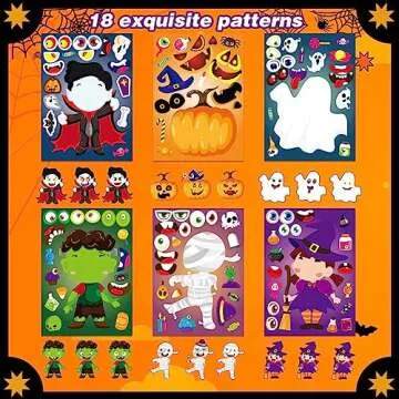 30Pcs Halloween Stickers Party Favors for Kids Toddlers ,Make a Face Stickers Self Adhesive DIY Stickers for Classroom Treats Party Game Treats Goody Bag Filler Stickers (Halloween A)