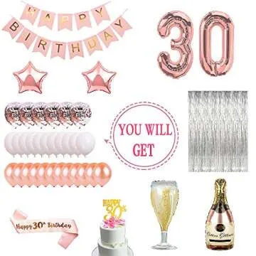 30th Birthday Party Decorations, Rose Gold Party Supplies with 30 Birthday Balloons, Happy Birthday Banner, Birthday Sash, Rose Gold Confetti Balloons, 30 Birthday Party Supplies for Women