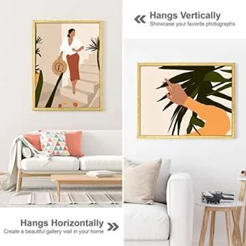 30x40 Picture Frame, Gold Poster Frame, Bamboo Design Natural Gallery Frame, Horizontal or Vertical Format, Sturdy Frame and Plexiglass, Large Photo Frame Wall Art, for Photos, Artworks, Posters