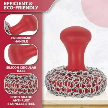 The scrubber's premium 316L stainless steel construction ensures that it not only lasts but provides a powerful clean without damaging your cookware. The chainmail design is...