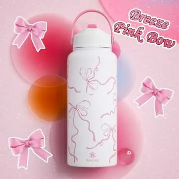 Show moreIntroducing the 32 oz Insulated Water Bottle with Straw, a walking revolution in hydration! Constructed from premium 18/8 stainless steel, this water bottle combines functionality and style in a stunning Breeze Pink Bow color that catches the eye. Perfect for those leading an active lifestyle, its double wall vacuum insulation ensures your drink stays icy cold for up to 24 hours, or piping hot for up to 12 hours. Designed for easy sipping, the water bottle features a unique 90-degree flip straw that allows for effortless hydration on the go, making it an ideal companion for your workouts, travels, or daily commute.