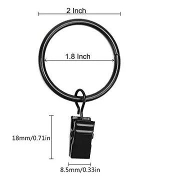 32 Pack Metal Curtain Rings with Clips Black Decorative Drapery Rustproof Vintage 1.77 Inch Interior Diameter