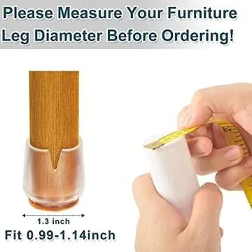 Show more If you've ever found yourself frustrated with scratched floors or damaged furniture legs, the Silicone Chair Leg Caps are here to save the day! These innovative protectors fit snugly around chair legs, designed specifically for those with a diameter of 25-29mm (0.99-1.14 inch). Made from high-quality silicone and non-woven fabrics, these caps not only offer remarkable durability but also provide a sleek and subtle look that blends seamlessly with your furniture. The transparent and brown color options ensure they can suit various styles without drawing attention, maintaining the aesthetic appeal of your home.