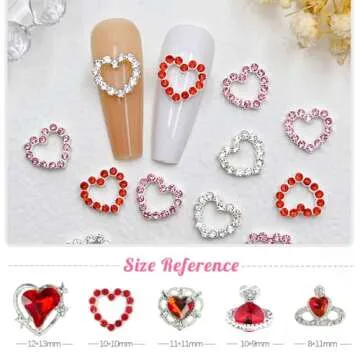 Show more Transform your nail game with our exquisite 32pcs Nail Charms Set, a perfect blend of elegance and creativity. Featuring 10 unique styles, including enchanting heart gems, crown heart gems, and heart planet gems, this collection is designed to elevate your manicure with a charming shine. The all-in-one set is ideal for anyone seeking to personalize their nails for various occasions.