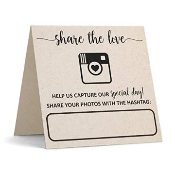 Show moreIntroducing the 321Done Wedding Hashtag Signs, a charming addition to your special day. Crafted with superior quality in mind, each tent card is designed and made right here in the USA, ensuring a top-notch product that reflects your commitment to excellence. Constructed from premium card stock, these signs feature a thick, durable 14 pt (140 lb or 300 gsm) material that stands up to the rigors of a lively wedding celebration. Unlike flimsy paper options, our card stock is easy to write on and won’t bleed through, allowing you to personalize each sign effortlessly. With their large size, these pre-scored cards fold neatly to a perfect 5" x 5", making them easy to display at each table without overwhelming your décor.