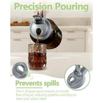 Show more Introducing the **32oz Glass Pitcher with Lid & V-shaped Pour Spout** — a marvel of functionality and design, meticulously crafted to cater to all your beverage needs. Whether you’re pouring *breast milk*, refreshing *juice*, or brewing *cold coffee*, this pitcher stands out with its innovative V-shaped spout and precise measurement markings, ensuring every pour is accurate and controlled. With a generous 1-quart capacity, it's the ultimate companion for every family occasion, allowing for easy measurement and serving.