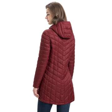 33,000ft Women's Long Puffer Jacket with Hood, Lightweight Warm Puffy Quilted Winter Coats