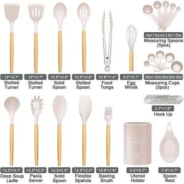 33 PCS Silicone Cooking Utensils Set, Kitchen Utensils Spatula Set with Holder, Wooden Handles Heat Resistant & BPA Free & Non-Toxic -Best Kitchen Gadgets Tools for Cookware(Khaki)