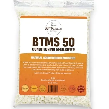 Show more33rd PARALLEL's BTMS 50 is the ultimate emulsifying solution for your cosmetic needs, delivering unmatched versatility in both skin and hair applications. This gentle, yet powerful conditioning agent is crafted from 100% natural plant-derived ingredients, ensuring you work with nothing but the best for your formulations. Each 2-ounce package provides the necessary functionality and quality expected from a premium cosmetic product. With its superb emulsifying capabilities, BTMS 50 ensures that your products remain creamy and consistent, providing exceptional moisture and smoothness to hair and skin alike. Users rave about its silky feel and how it enhances the texture of various formulations, including conditioners, shampoos, creams, and more, making it a staple in luxury cosmetic crafting.