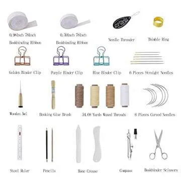 34 PCS Book Binding Kit,Book Making Kit,Book Binding Kit for Beginners with Waxed Linen Thread for Book Bind,Awl for Book Bind,Well Suited for Cutting,Sewing and Stitching for Leather Making.