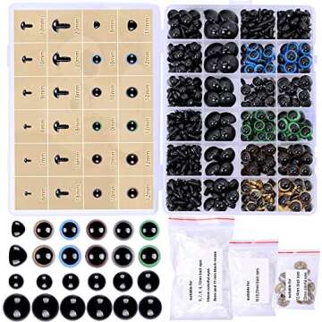 This kit includes 6-20mm black safety eyes, 10mm and 12mm colorful safety eyes, and safety noses.
