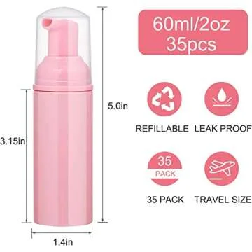 35 pcs 2oz (60ml) Foam Soap Dispensers Mini Plastic Refillable Travel Bottles with Pump for Hand Sanitizer Lash Shampoo Castile Liquid Pink