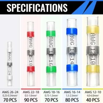 Show moreIntroducing the ultimate solution for your wiring needs - our 350PCS Solder Seal Wire Connectors. This innovative kit features a remarkable double-wall design complemented by a hot melt adhesive that ensures superior wire connectivity, preventing any slipping from the terminal. Crafted with high-quality polyolefin tubing, these connectors offer excellent insulation and enhance pullout strength for added reliability across various applications. With 350 pieces included, you'll have plenty to tackle any project.