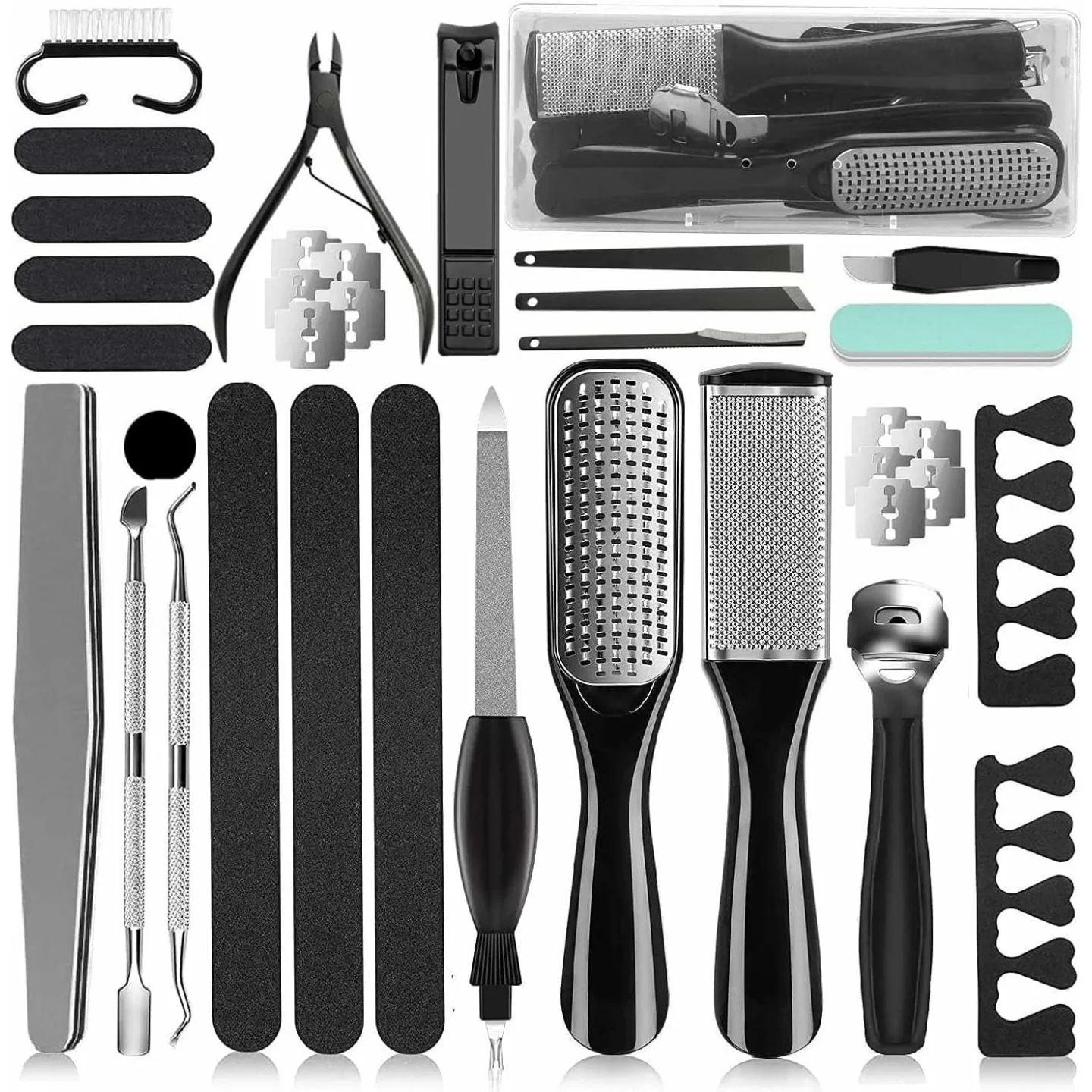 The kit contains a total of 36 different tools for comprehensive foot and nail care.