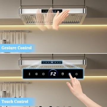 Show more Transform your cooking space with the 36 inch Under Cabinet Range Hood, a perfect blend of modern elegance and advanced technology. Crafted from durable stainless steel, this range hood goes beyond aesthetics with its intuitive features that elevate your kitchen experience. The touch and gesture control allows you to operate it effortlessly, ensuring a smooth overall function that minimizes the risk of accidental touches while cooking. Equipped with powerful suction capabilities, this hood guarantees a clean and fresh cooking environment by effectively removing smoke, steam, and odors.