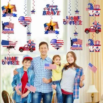 Show more Elevate your Memorial Day celebrations with our stunning Memorial Day decorations that have been thoughtfully designed to provide an exceptional festive atmosphere. Forget the hassle of setting up complex decorations; our pre-assembled collection makes decorating a breeze. Each element is ready to hang, allowing you to effortlessly create a captivating display in your home or outdoor space.