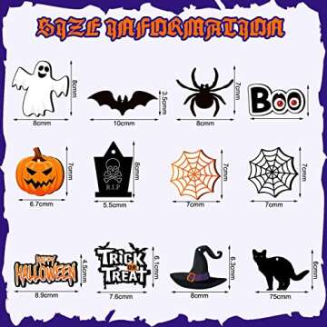 The package contains 36 pieces, featuring various Halloween themes like bats, ghosts, and pumpkins.