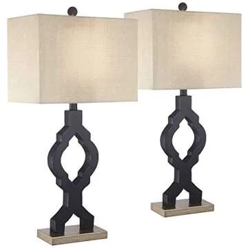 Inspired by both bohemian and modern lighting trends, these lamps showcase a trellis quatrefoil decorative base crafted from durable cast resin with a chic black finish. The natural linen fabric shades not only provide a warm glow but also enhance the lamps' elegant aesthetic, making them suitable for various interior styles.