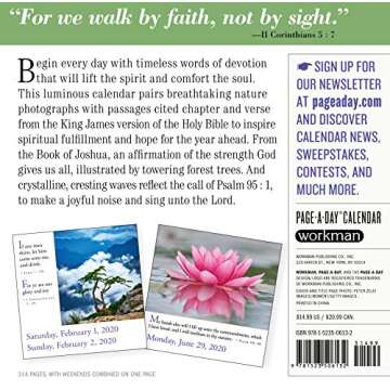 Show moreTransform each day into a source of a hope and inspiration with the 365 Bible Verses-A-Year Page-A-Day Calendar 2020. This beautiful calendar not only keeps you organized throughout the year but also guides you through the uplifting messages of the Bible. With a verse for every day, it serves as a daily reminder of faith, love, and resilience, ensuring that you remain grounded and inspired in all that you do. Each page features thoughtfully selected verses that resonate with individuals from all walks of life, bridging the ancient wisdom of Scripture with the contemporary challenges of daily living.