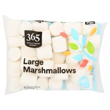 Show moreIndulge in the fluffy delight that is the 365 by Whole Foods Market Large Marshmallows. This 10-ounce bag is filled to the brim with pillowy soft marshmallows that are perfect for any occasion. With just 90 calories per serving, these delectable treats are surprisingly light yet satisfyingly crunchy on the outside and exceedingly soft on the inside. Ideal for roasting, baking, or floating atop your favorite hot cocoa, these marshmallows offer a delightful explosion of sweetness in every bite. Made without dyes or carrageenan, they provide a guilt-free snacking option that aligns with your health-conscious lifestyle.