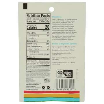 Unlike many competitors that may use artificial ingredients or fillers, 365 by Whole Foods Market Organic Taco Seasoning is carefully formulated with quality in mind. This means you get an authentic taco seasoning experience without any compromises. The organic certification also sets it apart, ensuring a healthier choice for you and your family while delivering delicious taste. Competitive brands often skimp on flavor, but with our seasoning, you can count on robust taste and natural quality with every pinch.