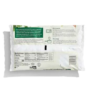 Show moreExperience the delightful simplicity and taste of the 365 by Whole Foods Market, Spinach Chopped Organic. This convenient 16-ounce package is expertly prepared from fresh, organic spinach, flash-frozen to preserve its vibrant flavor and nutrients. Each serving offers a wholesome and versatile addition to your meals, ensuring that you can enjoy the nutritional benefits of spinach without the hassle of washing, chopping, or cooking from scratch. Whether stir-frying or adding to soups, you can elevate any dish in just a matter of minutes!