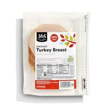 Show moreIndulge in the rich and savory delight of 365 by Whole Foods Market Turkey Smoked Sliced—an exquisite addition to your culinary adventures. This 6-ounce package of deliciously smoked turkey slices not only brings a gourmet touch to your sandwiches and salads but also champions a healthier lifestyle without compromising on flavor. Crafted with premium, all-natural ingredients, this turkey is minimally processed and free from artificial preservatives, ensuring you enjoy every bite knowing you are nourishing your body well. The distinct smoky flavor with just a hint of spices makes it versatile for various meals, from casual lunches to elegant dinner spreads.