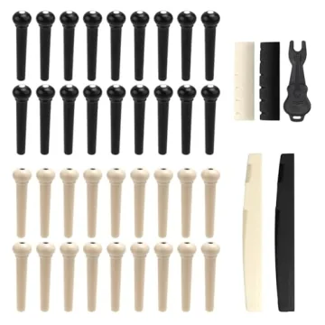 36pcs Guitar Bridge Pins, Guitar Pegs Parts Replacement Tool, Acoustic Guitar String Pegs Puller Remover, Acoustic Guitar Saddle Nut, String Winder and Cutter Kit for Guitar Part Accessories