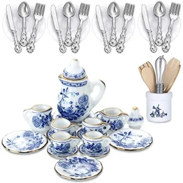 Show moreWelcome to the enchanting world of dollhouse imagination with our delightful 37-Piece Miniature Dollhouse Kitchen Accessories Set. This charming collection features intricately designed mini plates, cutlery—complete with knives, forks, and spoons—and adorable mini tea cups, making it an exquisite addition to any dollhouse scene. Crafted to perfection, each piece is made from high-quality porcelain, wood, and metal, ensuring they are not only visually stunning but also safe and durable for endless play. The lovely blue pattern on each item adds a touch of elegance that truly stands out. Perfectly scaled for your dolls, with sizes ranging from just 1 x 1 x 0.2 inches for plates to 1.7 x 0.6 x 0.6 inches for utensils, this set gives you the ability to craft vibrant kitchen settings just like you’ve always dreamed of.