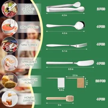 Show moreIntroducing the **38 Pcs Charcuterie Boards Accessories Set**, the ultimate all-in-one solution designed for cheese lovers and entertaining enthusiasts alike. This meticulously curated collection features 4 cheese spreader knives with elegant stainless steel handles, 2 mini serving tongs, 4 mini spoons, 4 mini forks, 4 honey dippers, and an assortment of toothpick flags (10 white and 10 brown). Crafted to elevate your culinary experience, these utensils not only add flare to your gatherings but are also perfect for fulfilling your daily serving needs. Each piece in this set has been constructed with premium quality materials, ensuring durability and style for every occasion.